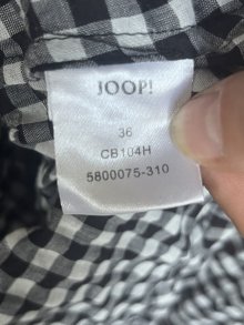 Joop Bluse Gr.S kragenlos kariert schwarz weiß luftig und lässiger Schnitt mit Rückenfalte