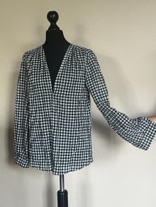 #Bluse Langarm Gr. S bzw. ca. Gr. 36, schwarz/weiß kariert mit Silberfaden