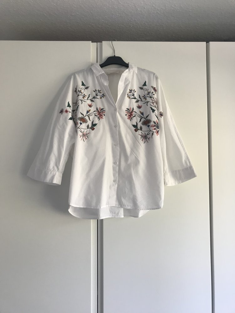 Weiße Bluse von Zara mit Blumenstickereien Weiße Bluse von Zara mit Blumenstickereien Weiße Bluse von Zara mit Blumenstickereien