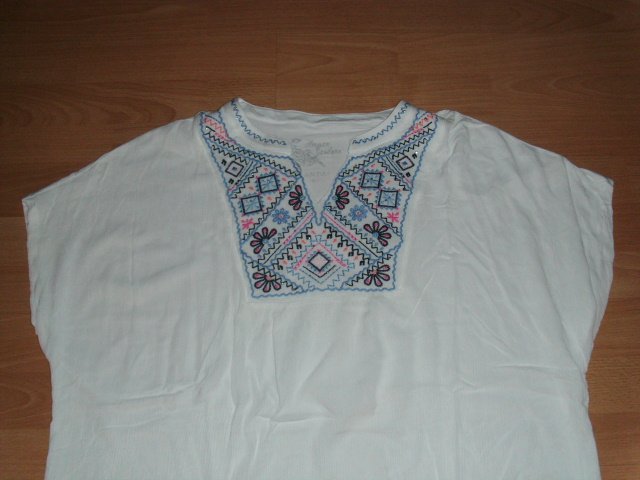 Biete hier eine Schupfbluse von Canda in Größe 50 an. Sie ist mit Gr. XL angegeben und wurde in oben genannter Größe getragen, Die Bluse ist weiß und besteht aus 100% Viskose. Vorn ist sie aus Crinklestoff und um den Halsausschnitt befindet sich eine Stickerei mit kleinen Schmucksteinchen. Die Bluse wurde getragen und ist gut erhalten.