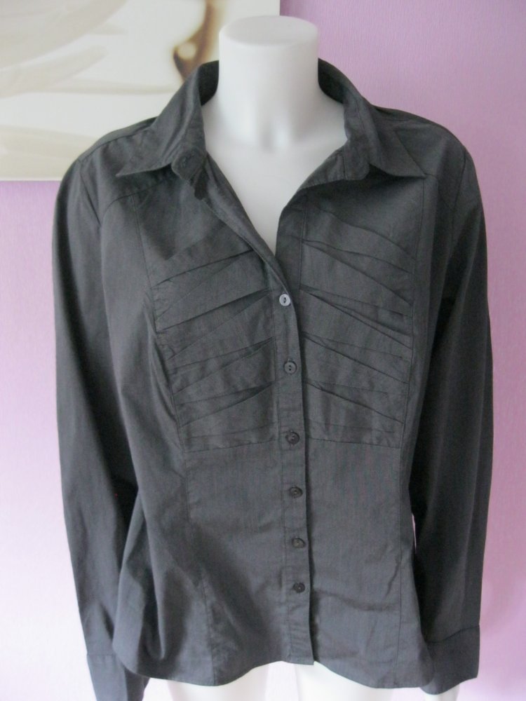 Dalia Collection Bluse / Hemd langärmlig Baumwolle Grau XL