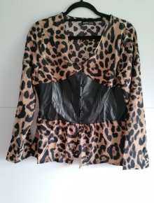 Schöne dünne Jacke oder Blusenjacke im Leo Look mit Reißverschluss Gr. ca. 40