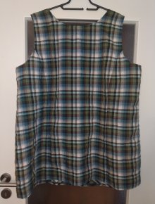 Diese Bluse kann man mit 8 Knöpfen schließen, hat 2 Brusttaschen und die Ärmel kann man zu Halbärmel hochkrempeln und mit einer Lasche befestigen. Die Bluse wurde wenige Male getragen und ist noch sehr gut erhalten.
