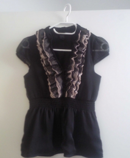 Schwarze, transparente Bluse mit goldenen Prints, Gr.XS