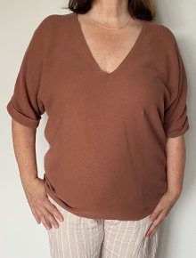 Tolles Basic Teil in leichtem Strick, grosser V-Ausschnitt, kurzarm bis zum Ellbogen