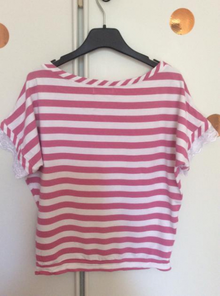 Cooles Shirt von Shoko - über Dawanda. Süße Spitze an den Ärmeln. Kurz geschnitten. Nur einmal getragen.