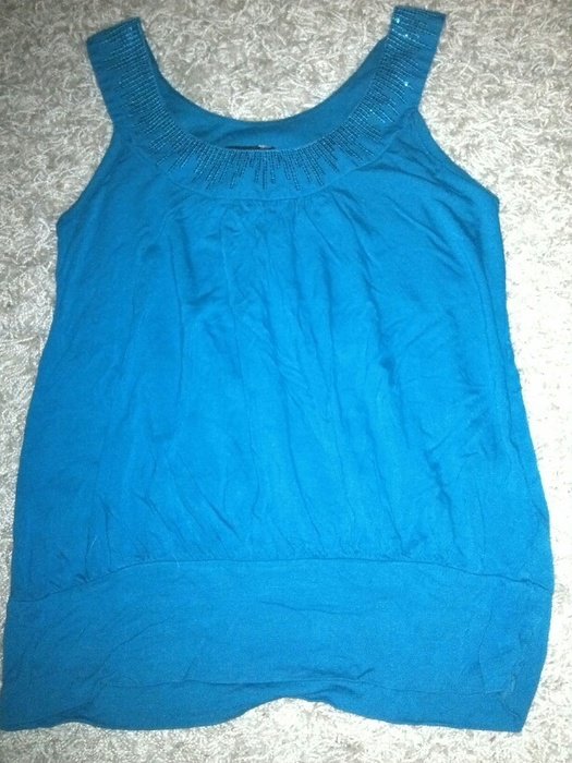 Blaues Top mit Glitzerbesatz am Ausschnitt. Ist lockerer geschnitten und in einem super Zustand!