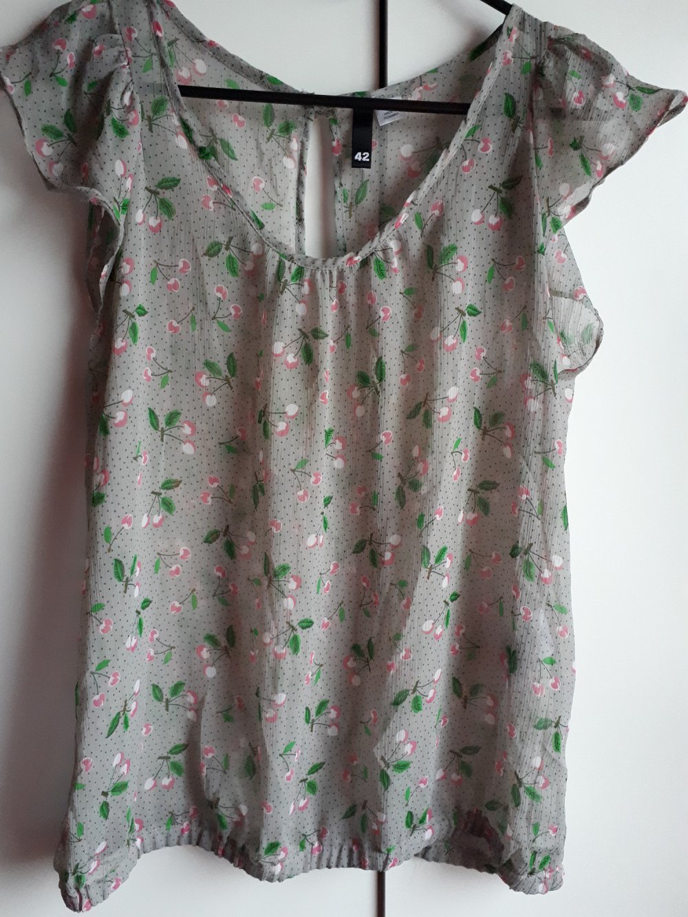 Zauberhaftes Blusenshirt, transparent grau mit Kirschen. Super luftig für den Sommer.