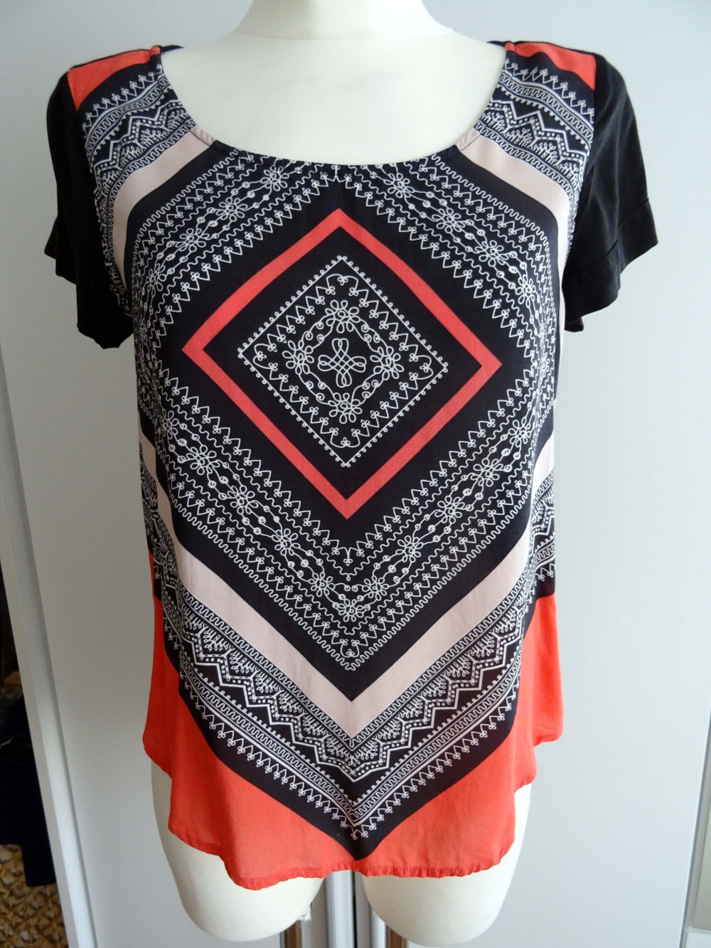 Einmal getragenes Shirt mit Bandana-Muster und sichtbaren Reißverschluss am Rücken.