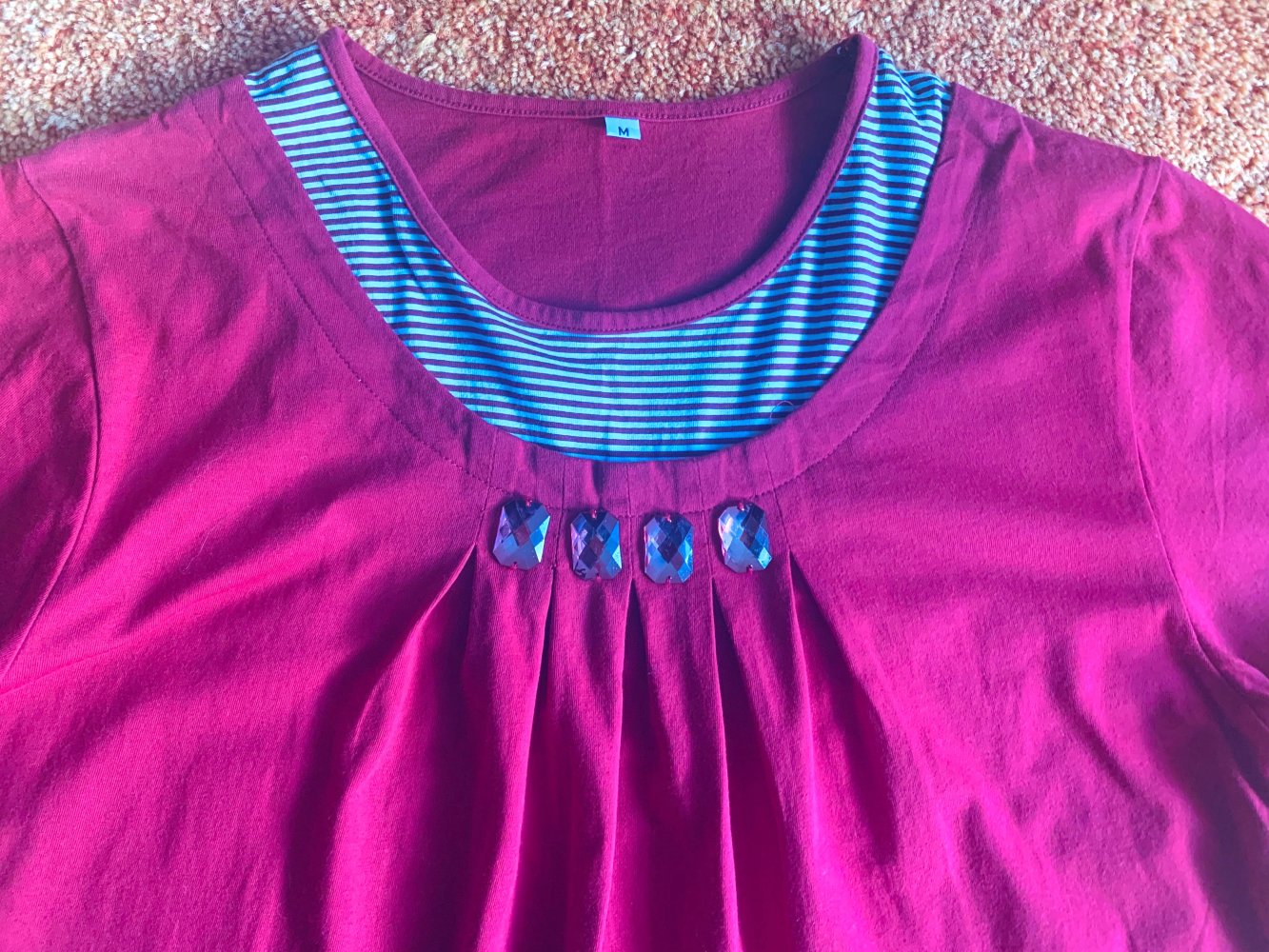 Damen Pullover/Shirt Gr.M Rot gestreift Lagenlook Glitzerdetails Neuwertig