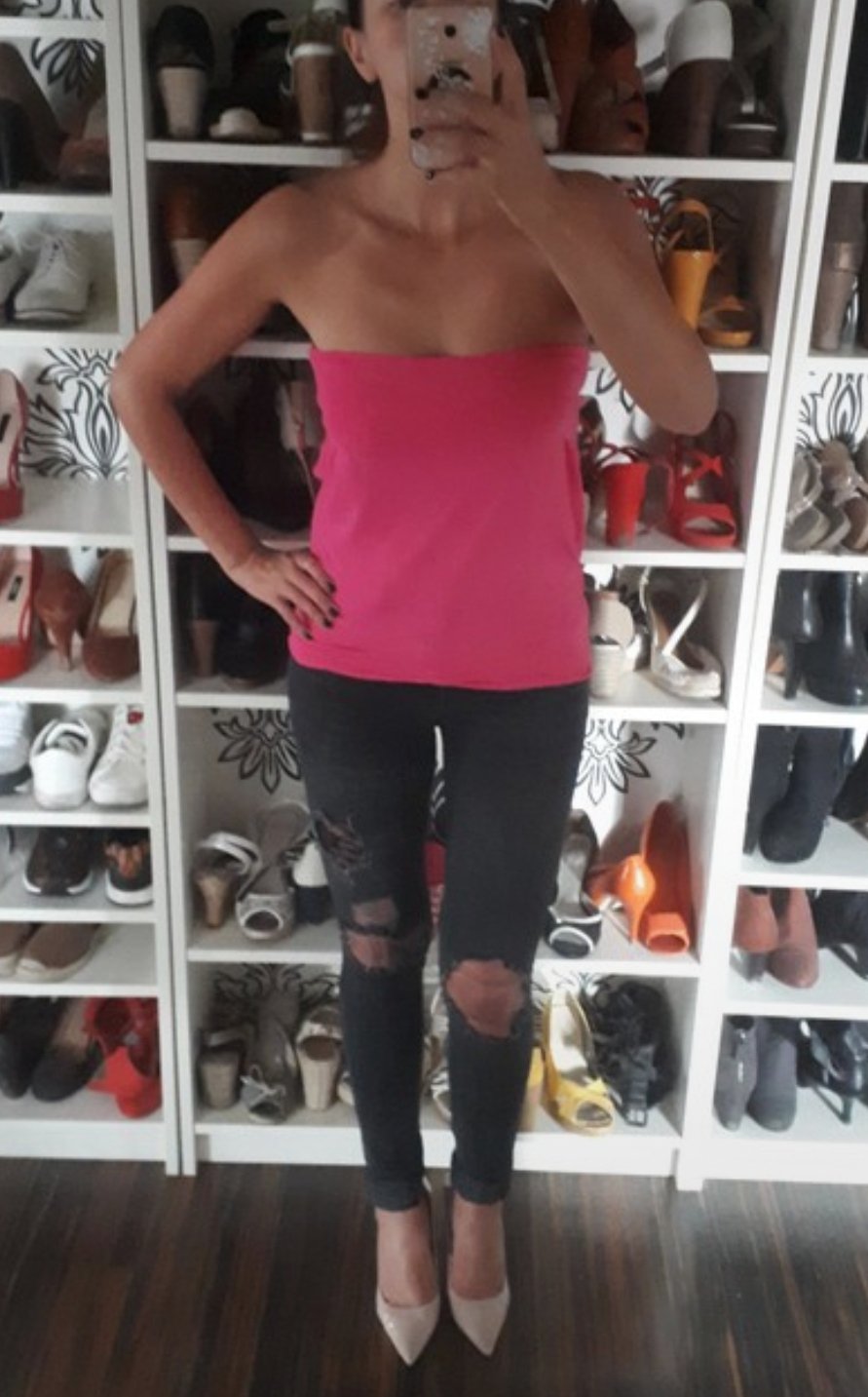 Ein schulterfreier Top in dem angesagten Pink. Unten ein Gummizug, so kann man einstellen wie lang man das Tragen möchten.