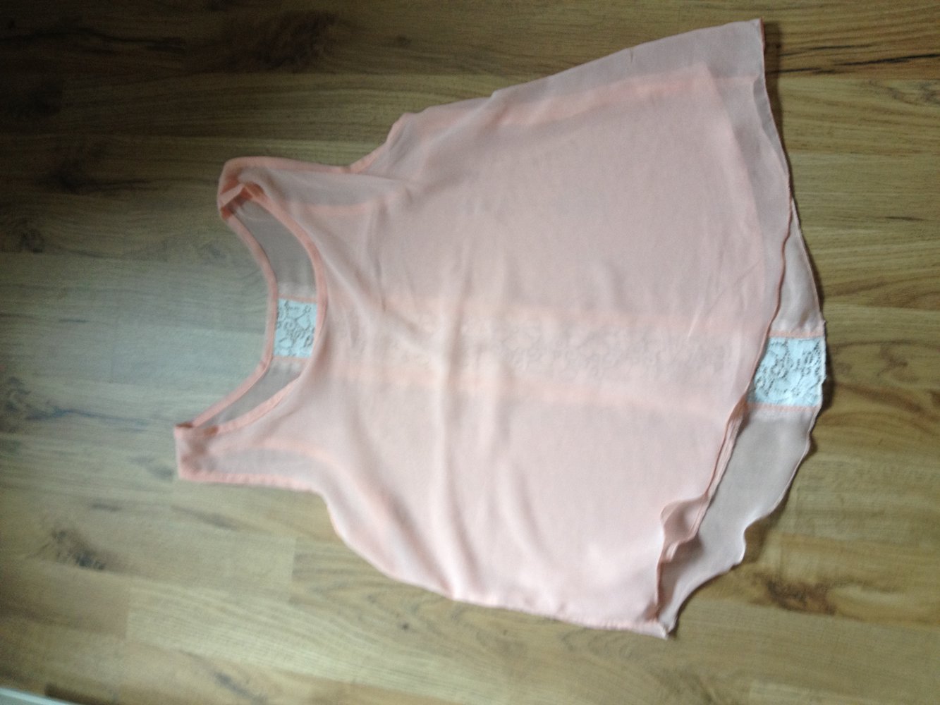 Zart rosafarbenes Oberteil mit zarter Spitze hinten, vorn doppelt gelegt, etwas durchscheinend, ca Größe 38, fällt schön locker