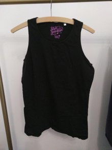 Original Vintage London Wear Top Trägertop Druck weiß Schnürung geschnürt S 36 Ausschnitt