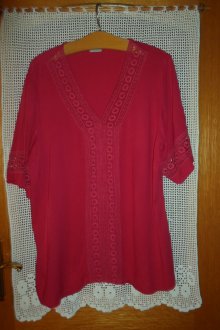 leichte Damen Tunika Gr. 46 48 XL Spitze himbeere rot