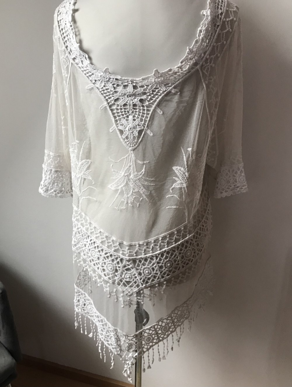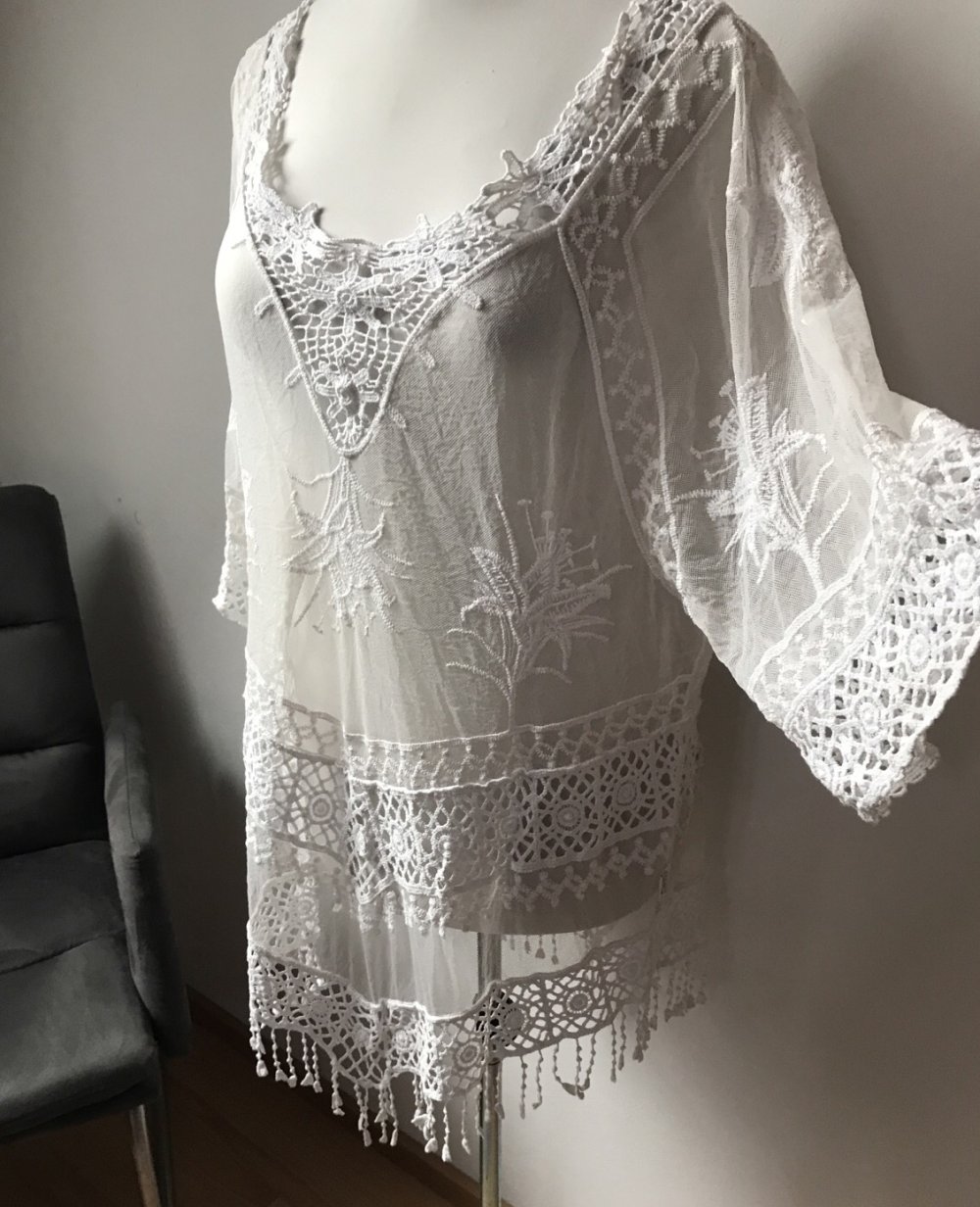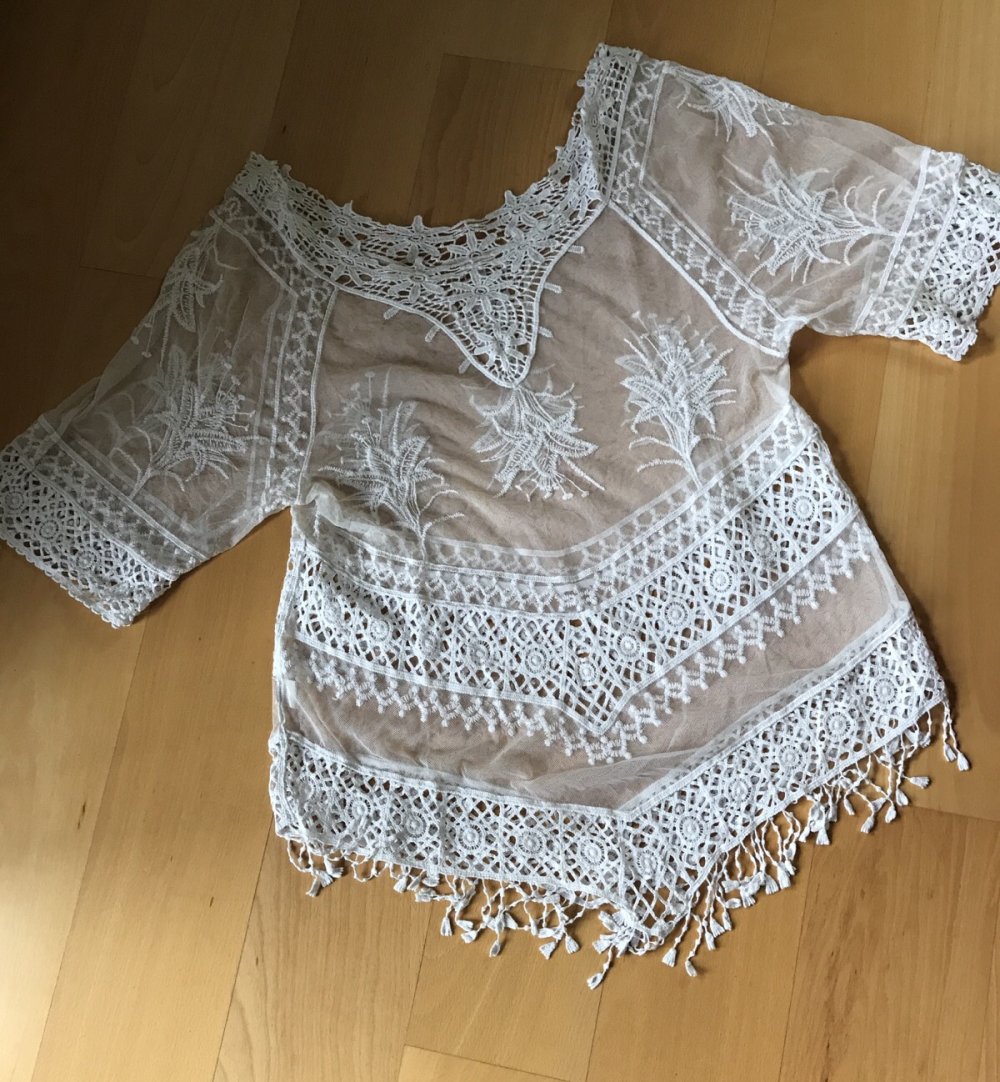 Tunika Kleid Mesh Makramee floral Kimono 44/46 Überwurf Boho Hippielook