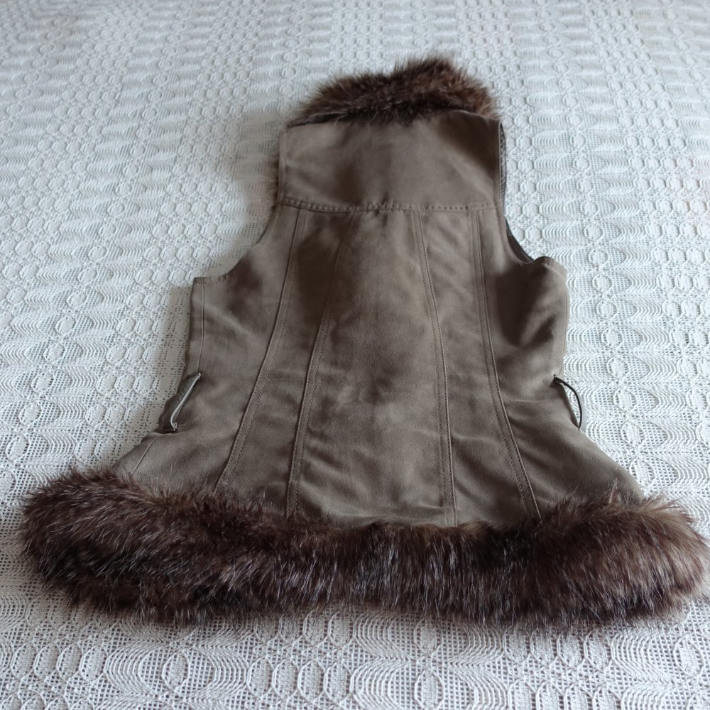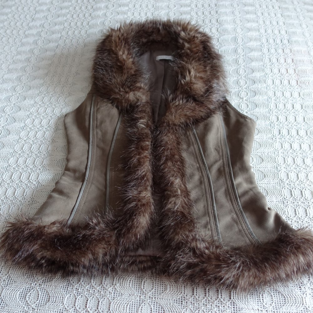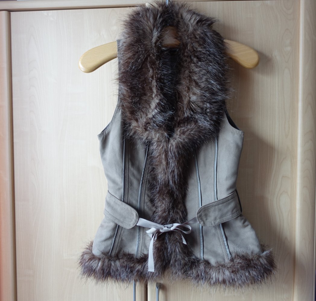 Weste, Wildleder-Weste, braun, mit Kunstfell, Gr. 34, ca. Gr. XS, Promod