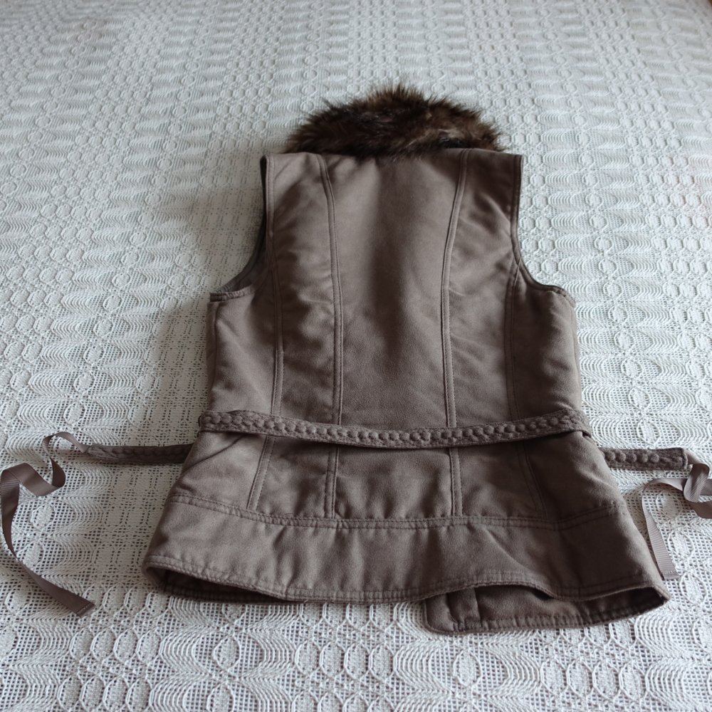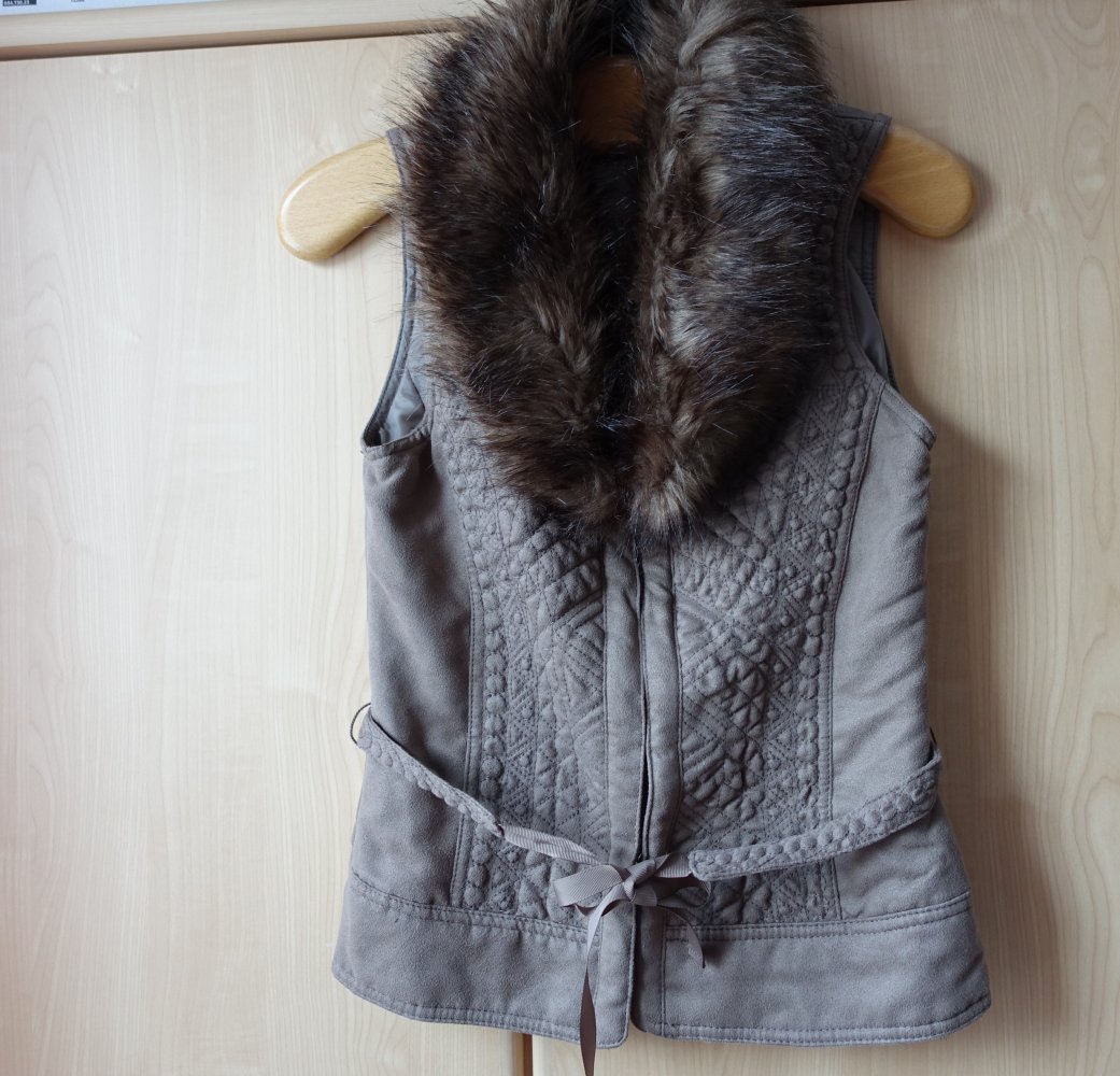 Weste, Wildleder-Weste, braun, mit Kunstfell, Gr. 34 bzw. ca. Gr. XS, Promod