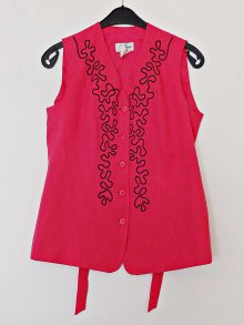 Pinke Vintage Weste mit schwarzen Ziernähten Gr. 40 Gr. M
