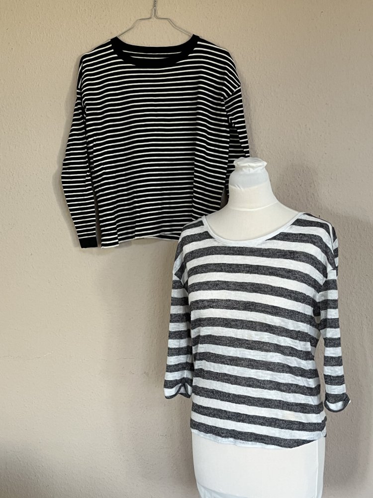 2 Stradivarius Feinstrick Ringel Pullover Gr.S grau / schwarz - weiß