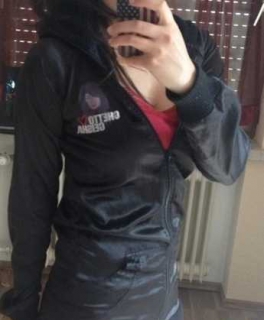 Graue Jacke Strickjacke Zipper Hoodiejacke Sweatjacke Raffungen Rüsschen Rüschen