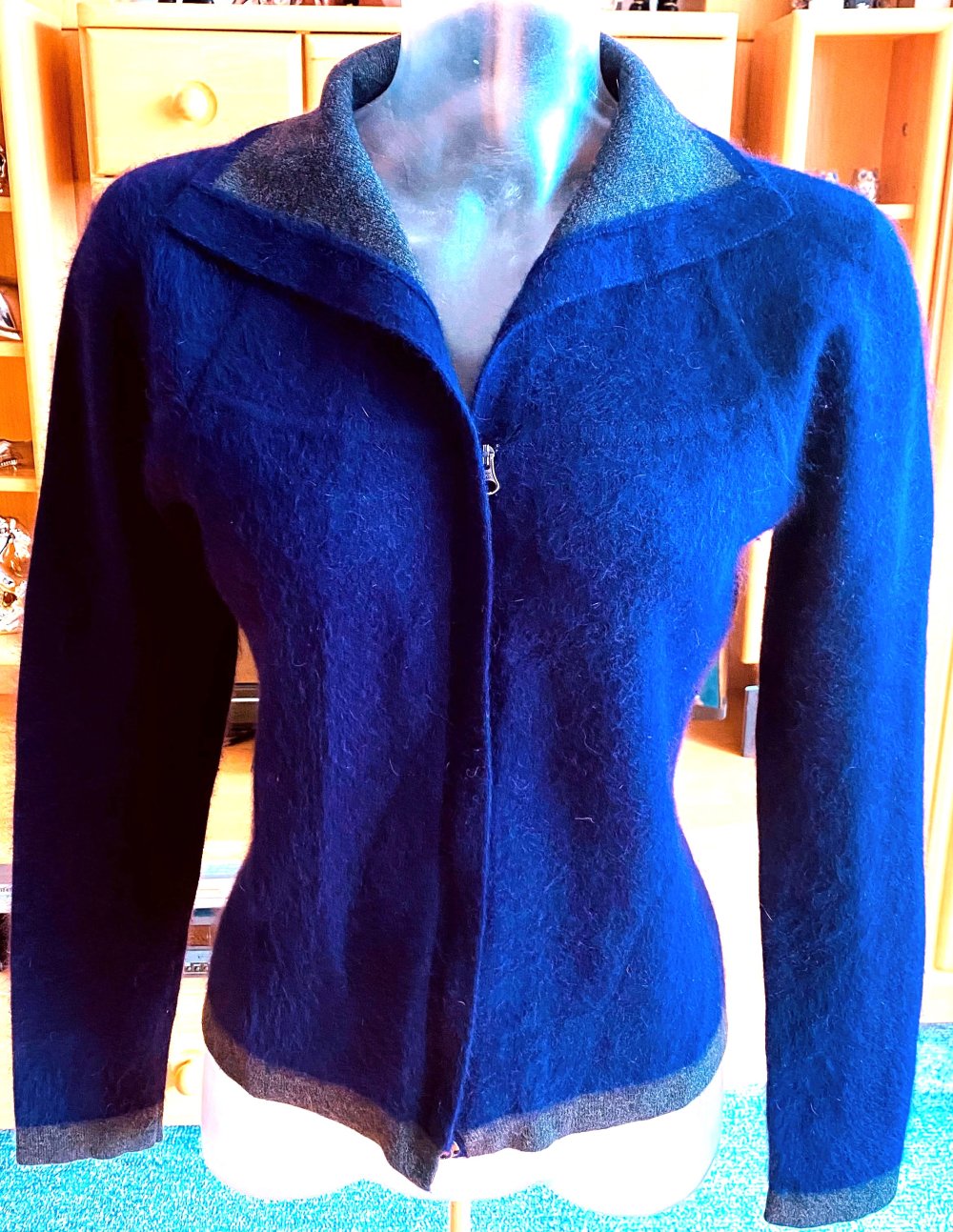 Damen Jacke Strickjacke aus Angora-Mix Gr.XS in Violett/Grau von Turnover NW