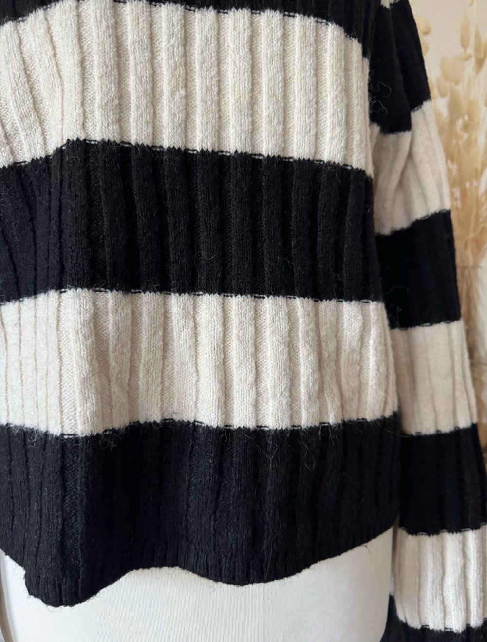 H&M Strickpullover schwarz weiß Creme gestreift S 36 Top