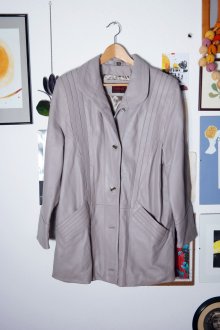 Vintage Lederjacke Ledermantel grau 80er 90er parka oversized hellgrau Kragen Echtleder Echtledermantel Echtlederjacke 40 L
