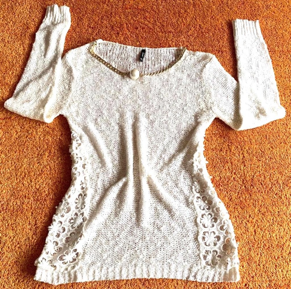 Damen Pullover Strick Pullover mit Spitze Gr.S Creme Forever NW