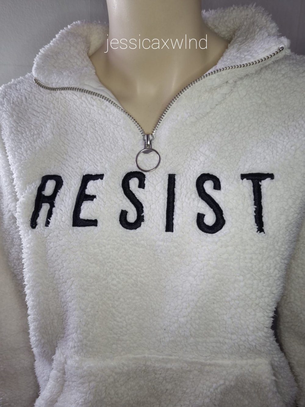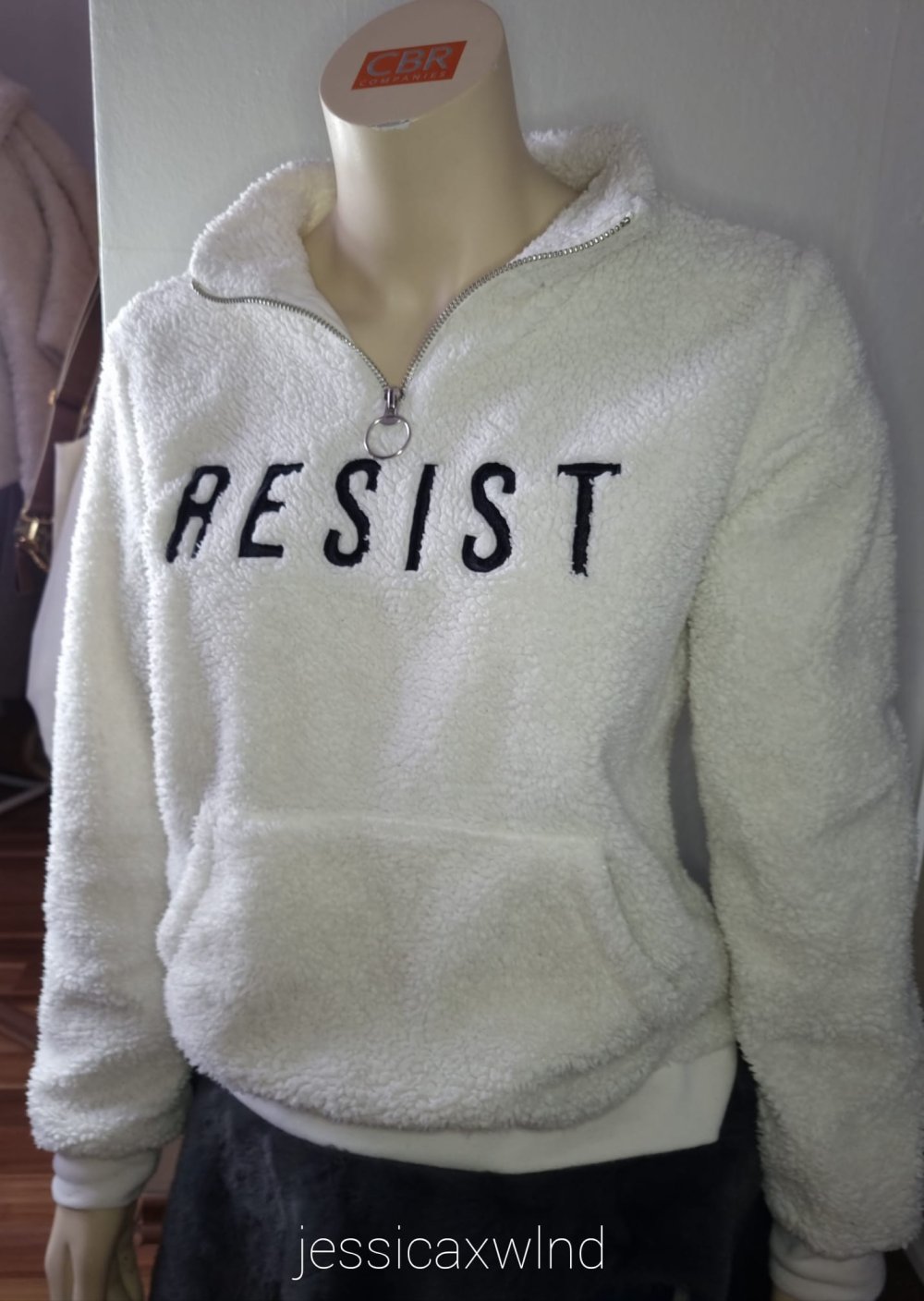 Ich möchte gerne meinen Pullover mit der Aufschrift "Resist" von der Marke pageone in der Größe S weitergeben.