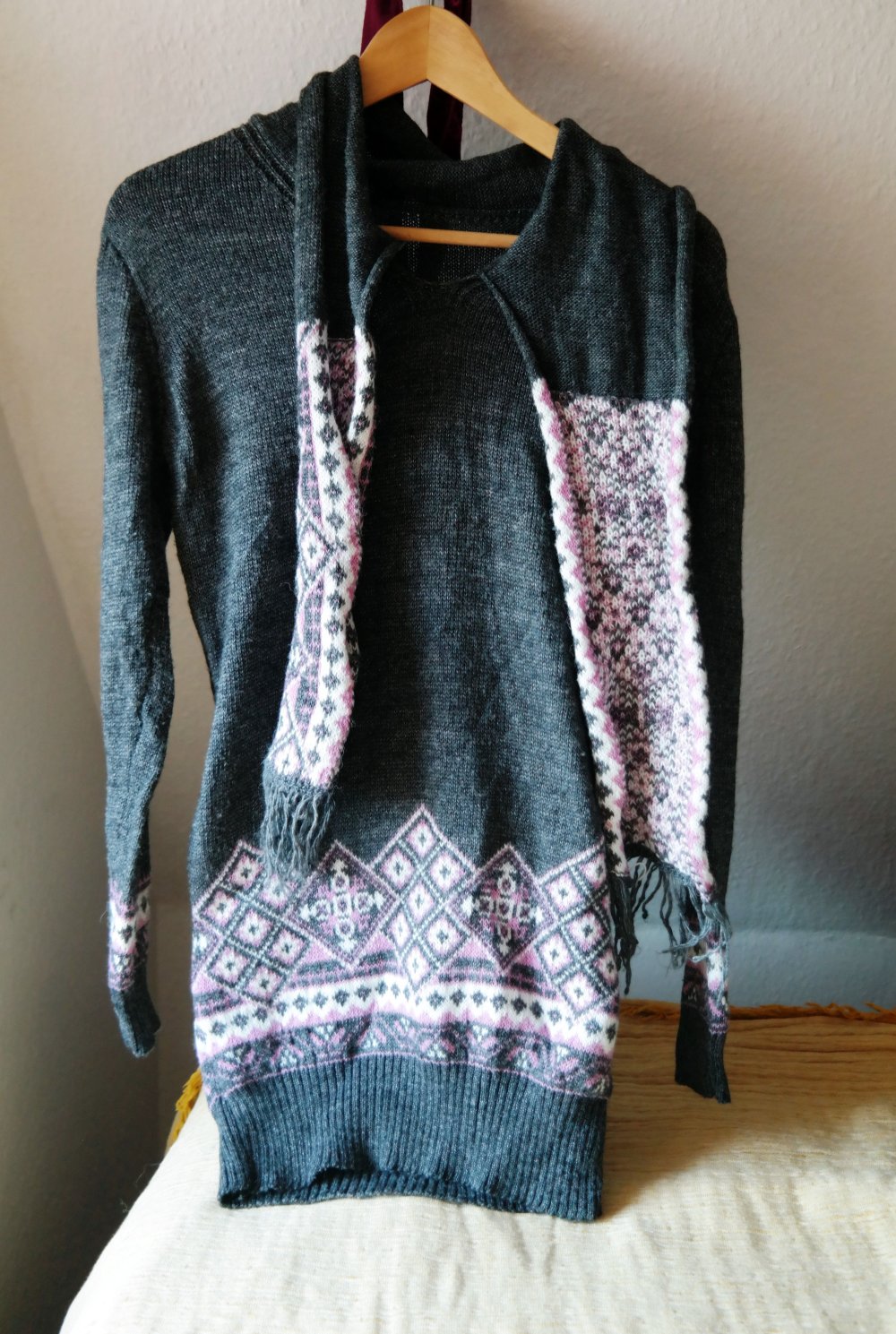 Grauer Pullover mit pastell Herzen mit Beleidigungen, Gr. S