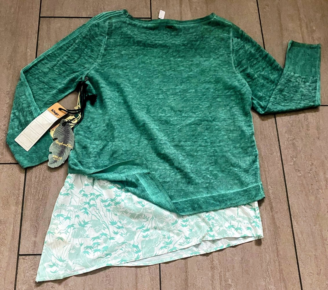 NEU Pullover Damen Leinen Lagenlook 2 in 1 Gr.S in Grün/Creme von Khujo