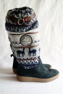 Alba Moda Pullover grau bunt Hippie V-Ausschnitt Muster Ethno Folklore XS M