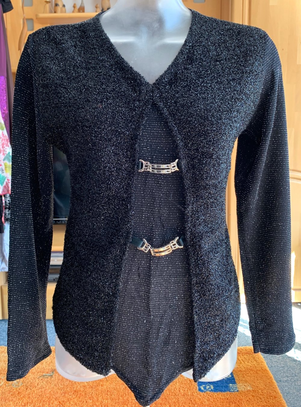 Damen Jacke Strickjacke mit Pailletten Gr.36 Schwarz/Braun Sem Per Lei