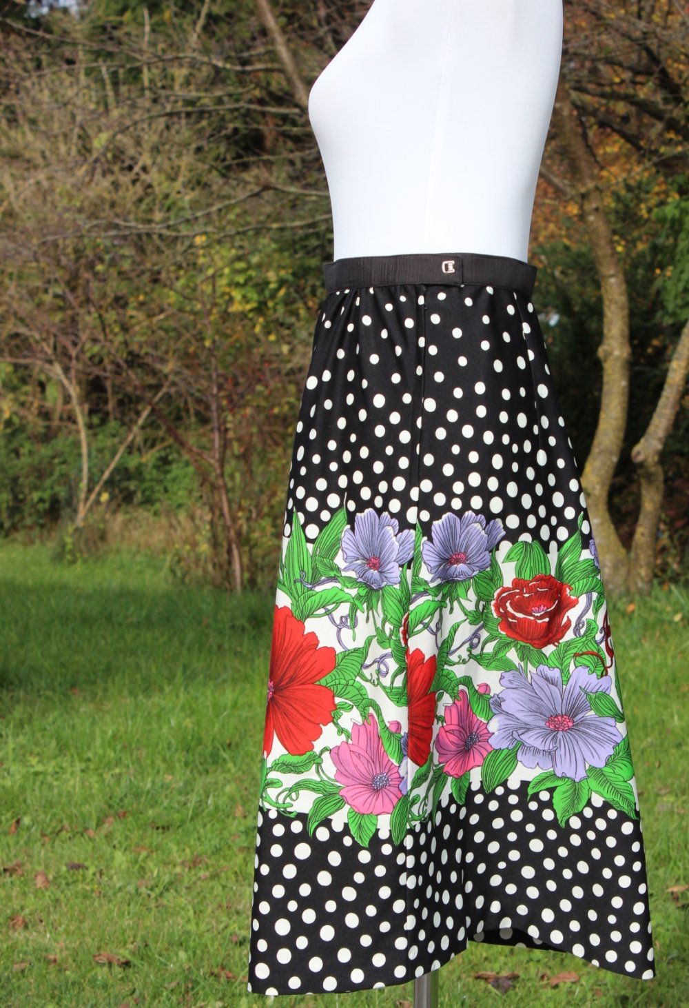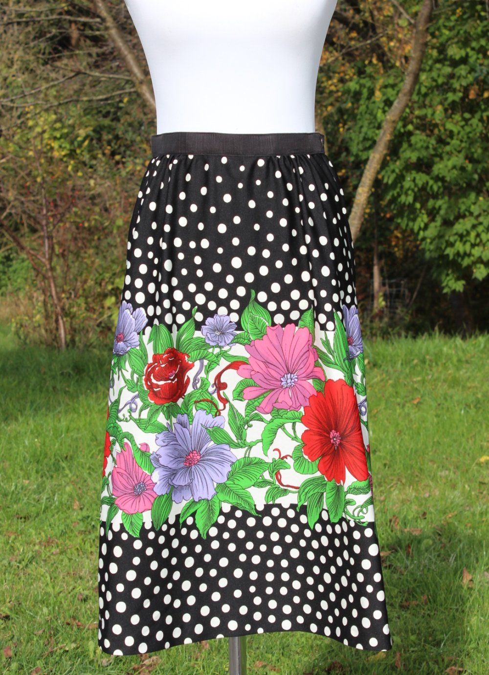 #truevintage #vintagerock #unikat #einzelstueck #tupfen #polkadots #highwaistrock #taillenrock #1970er #rockabilly #rockabella #sommerrock #blumenmuster