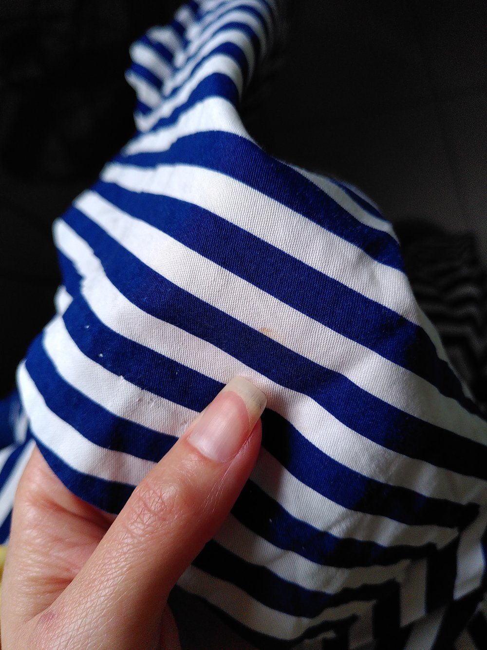 Zustand: Hat leider ein kleines Loch, außerdem 2 große gelbliche Flecken und einen kleineren rötlichen wie auf den Bildern zu sehen. Hab ich leider beim Waschen nicht raus bekommen.