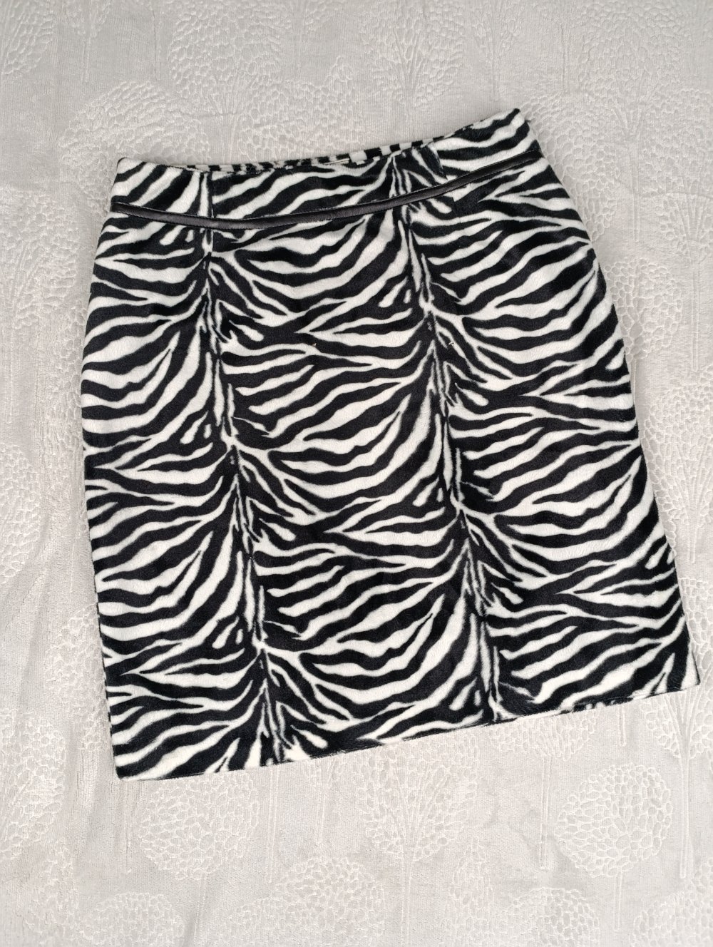Vintage Minirock SERGIO DONNA — Plüsch, Zebra-Print (90er/Retro)