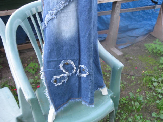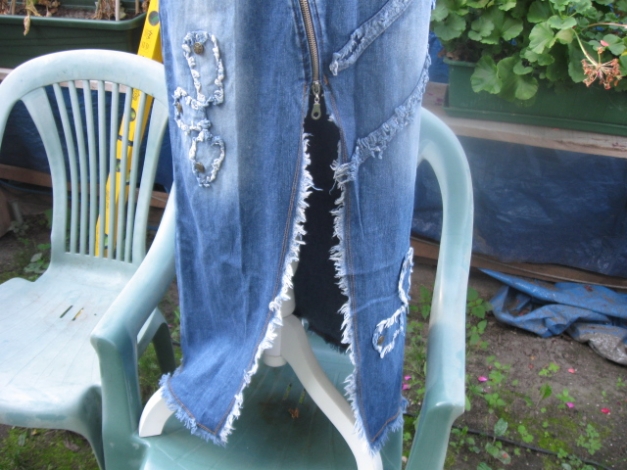 Dieser Jeansrock besitzt keine störenden Taschen, er wird vorne durch einen schräg laufenden Reißverschluss geschlossen, der Rest dient als Gehschlitz, für einen besseren Bewegungsfreiraum. Des weiteren besitzt er einige tolle Details, seht Euch einfach die Bilder an. Hier noch einige Maßangaben: