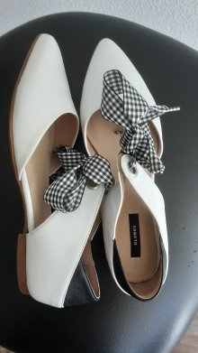 Schleife schwarz-weiss, Leder am Fersen schwarz. Nie getragen.