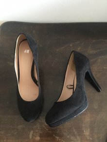 Schwarze Pumps von H&M, in Wildlederoptik mit Kleinem Plateau vorne ca. 1,5cm, Pfenningabsatz ca. 10cm hoch