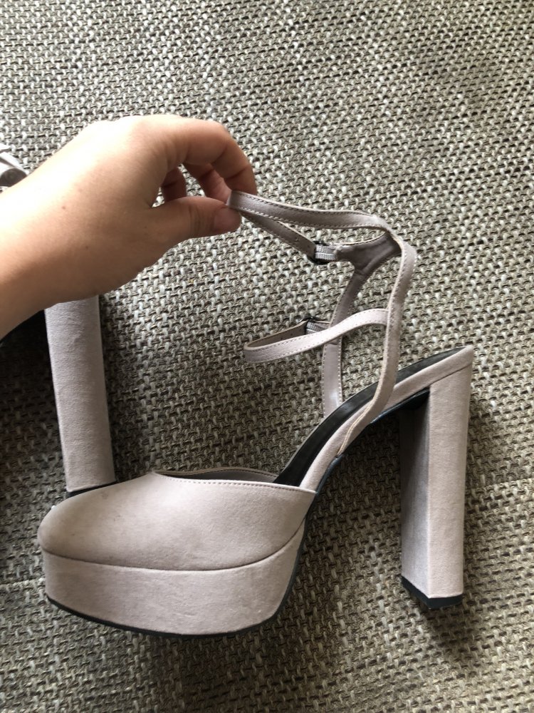 Biete hier wunderschöne Plateau Pumps in beigegrau von New Look. Die Pumps wurden nur einmal getragen. Der Absatz beträgt ca 13cm. Plateau vorne ca 2 cm. Riemen ca. 0,8cm breit.