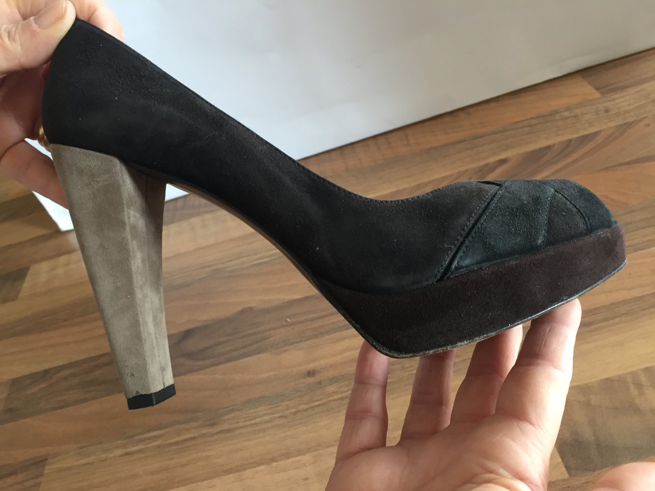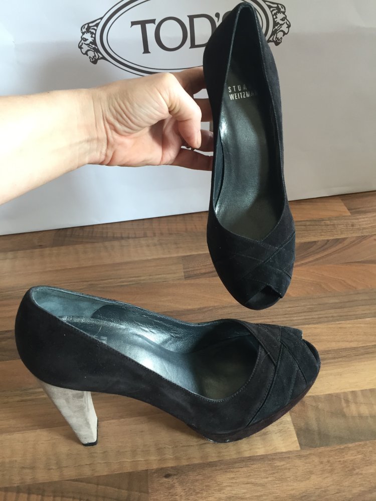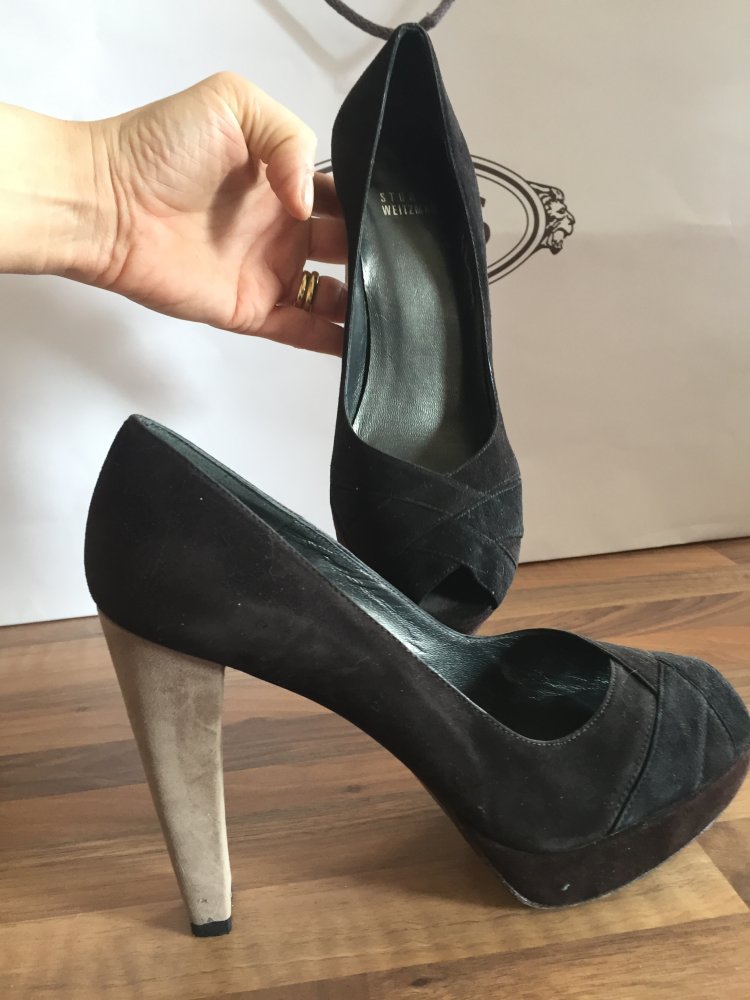 Stuart Weitzman Tri Color Wildleder Plateau Peep Toes Gr.38 1/2 , super High Heels aus den USA, kaum getragen,