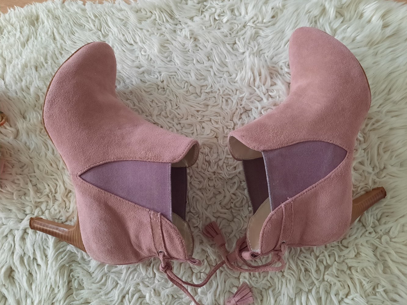 Biete diese modischen von mir nur 2x getragenen Stiefeletten aus Leder in der Farbe rosé an. Der Schaft ist aus weichem Wildleder und hat durch die Seitengummis sowohl einen lässigen als auch eleganten Look.