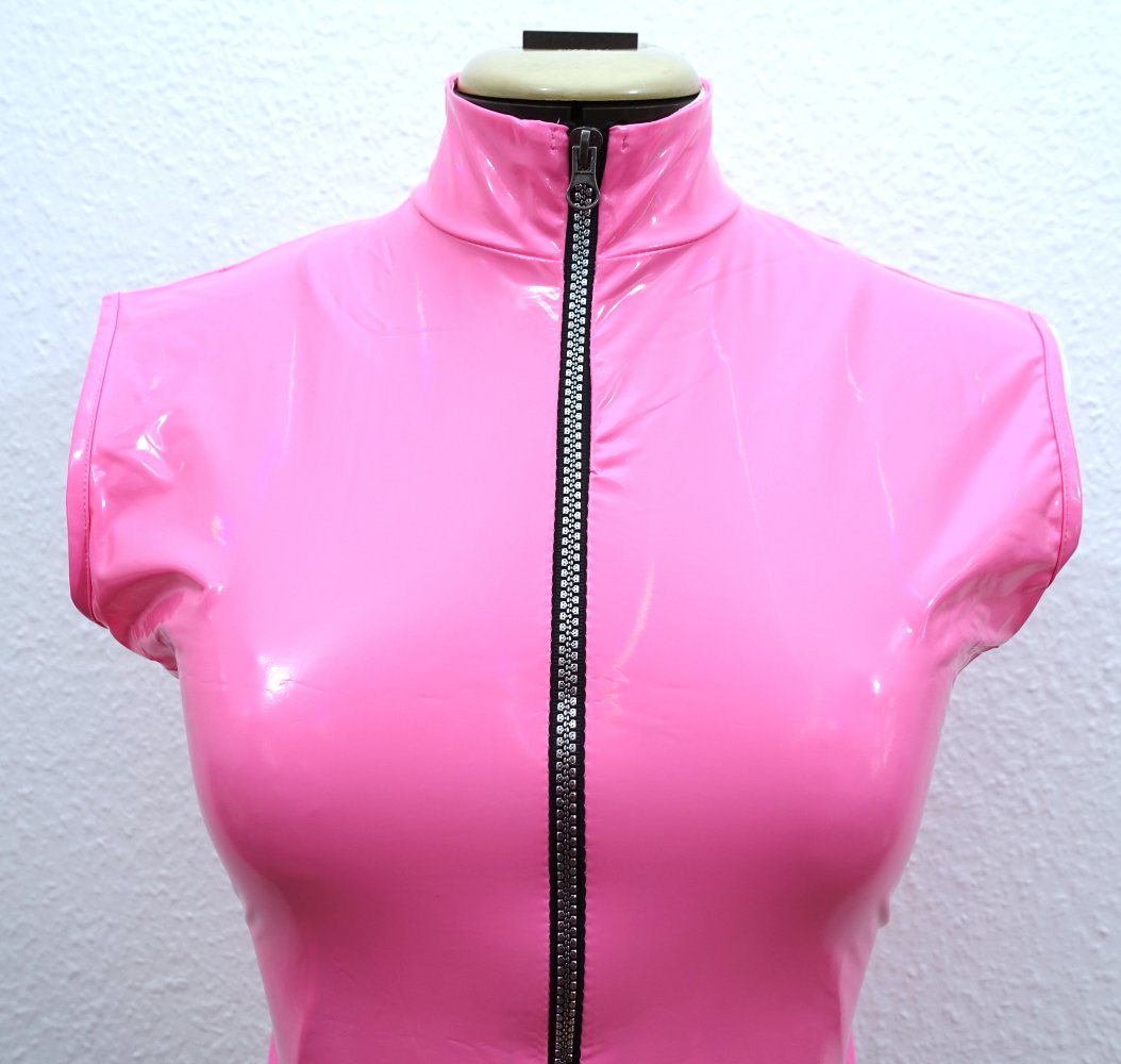 Body | Bodysuit, Metallic-PU-Leder, Latex Look, pink, S ✮NEU✮