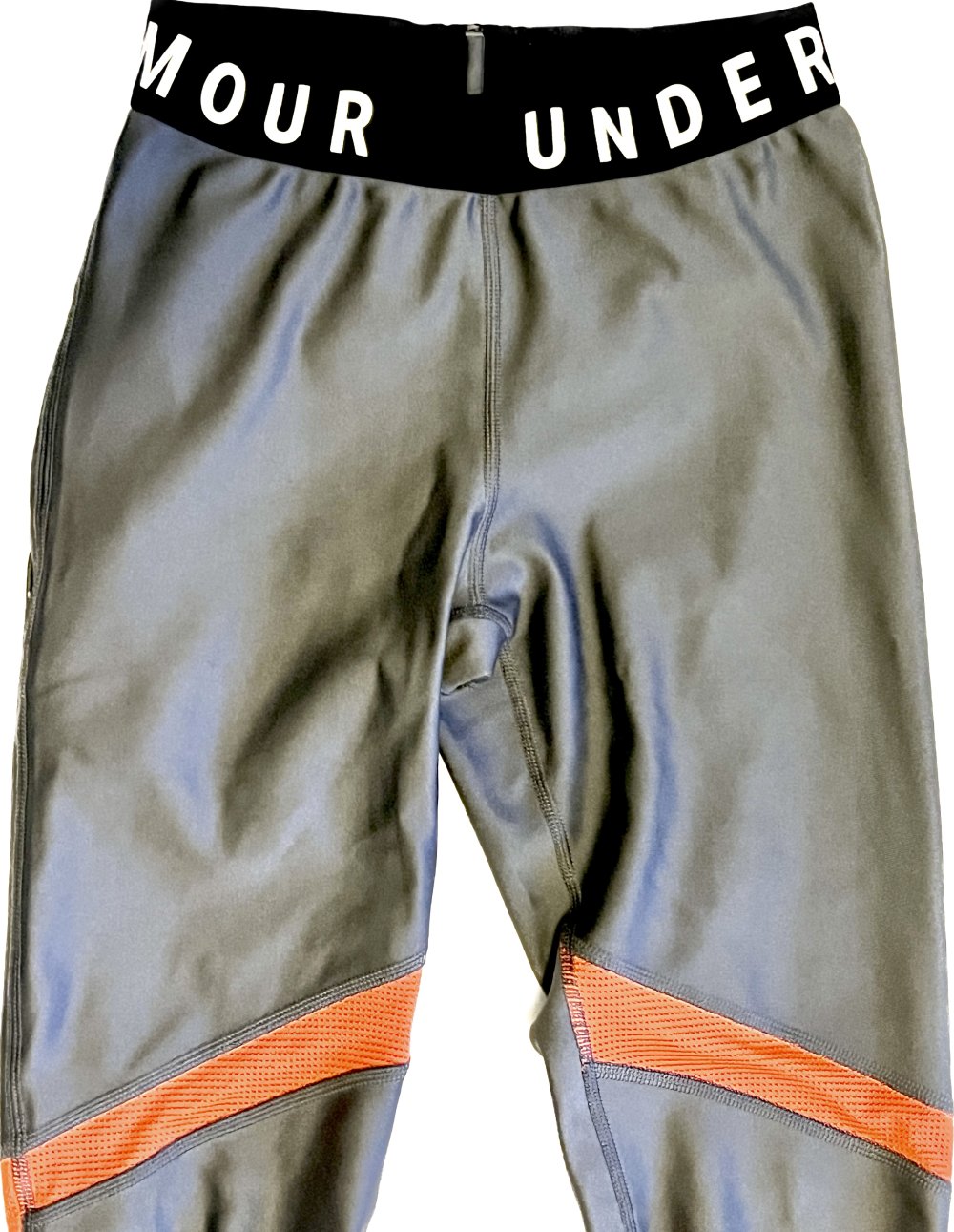 UNDER ARMOUR Tights Sport Leggings Gr. 32 2XS XXS, silbergrau orange, silbernes Logo, auch top als Laufhose geeignet, reflektierend