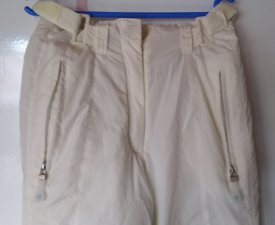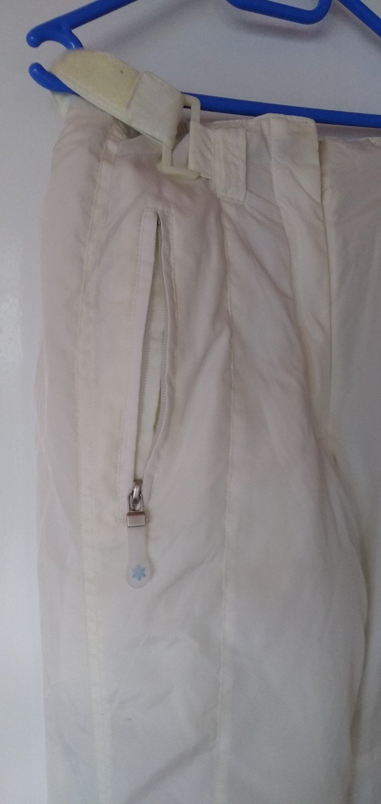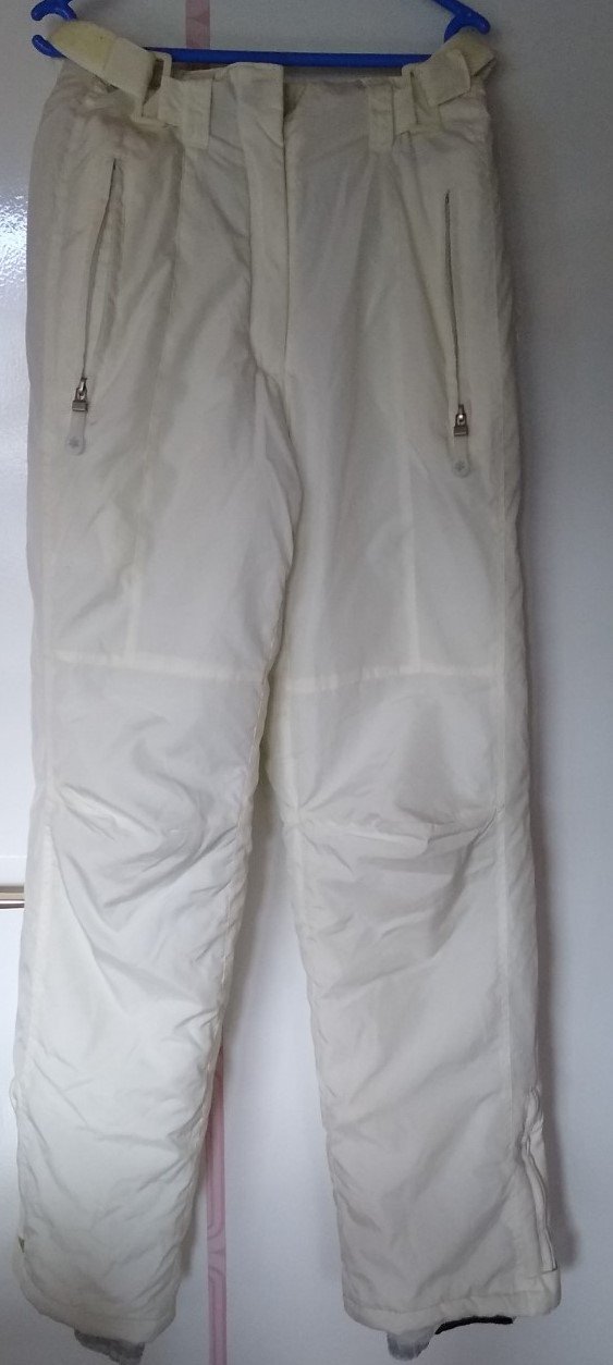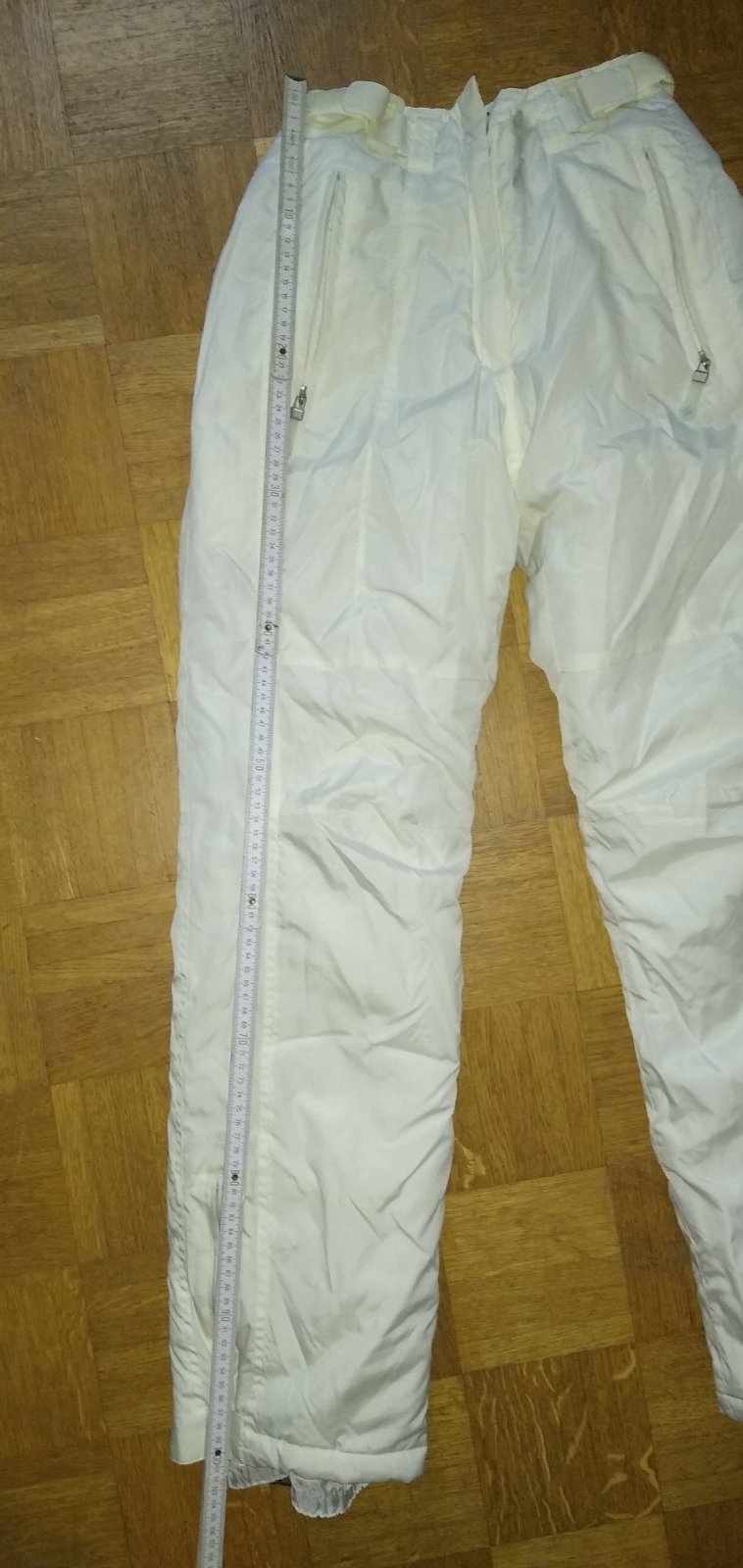 Ich verkaufe hier eine Skihose in der Größe XS/ 34 in gedeckten weiß. Die Skijacke ist vorwiegend rosa, Größe 164 (ich habe beides für mich gekauft. Da ich meistens die Größe 32 und 34 trage, passt mir die 164 auch).