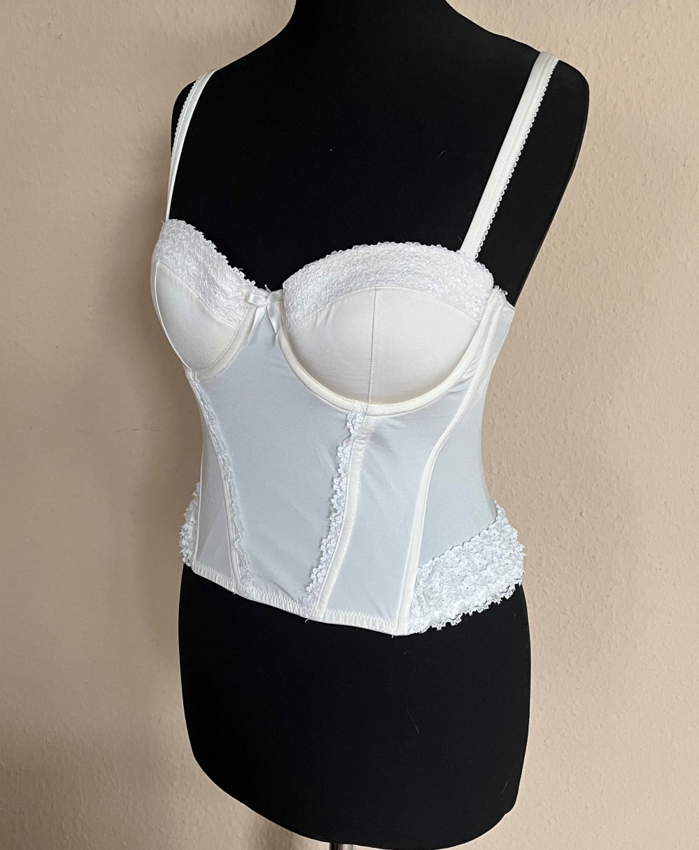 Korsage ist mit einer Gr.38 ausgezeichnet, entspricht aber definitiv einer Gr.36, weshalb ich sie auch leider abgeben muss. Farbe Creme / Weiß