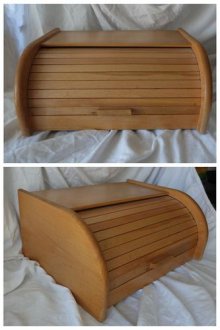 Brotkasten aus Holz, zu öffnen mit Schiebedach, Breite 40 cm, Höhe 18 cm, Tiefe 26,5 cm. Eignet sich zur Aufbewahrung von Brot und anderen Gegenständen (keine Flüssigkeiten).