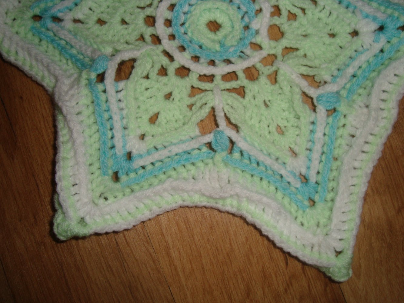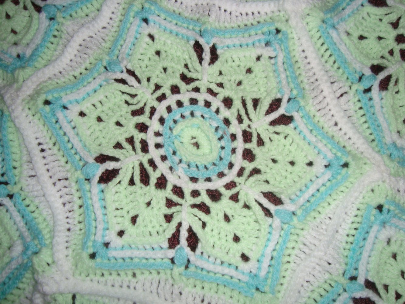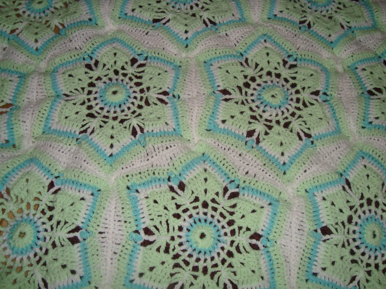 Passionsblumen-Hexagon Decke in Pastellfarben gehäkelt