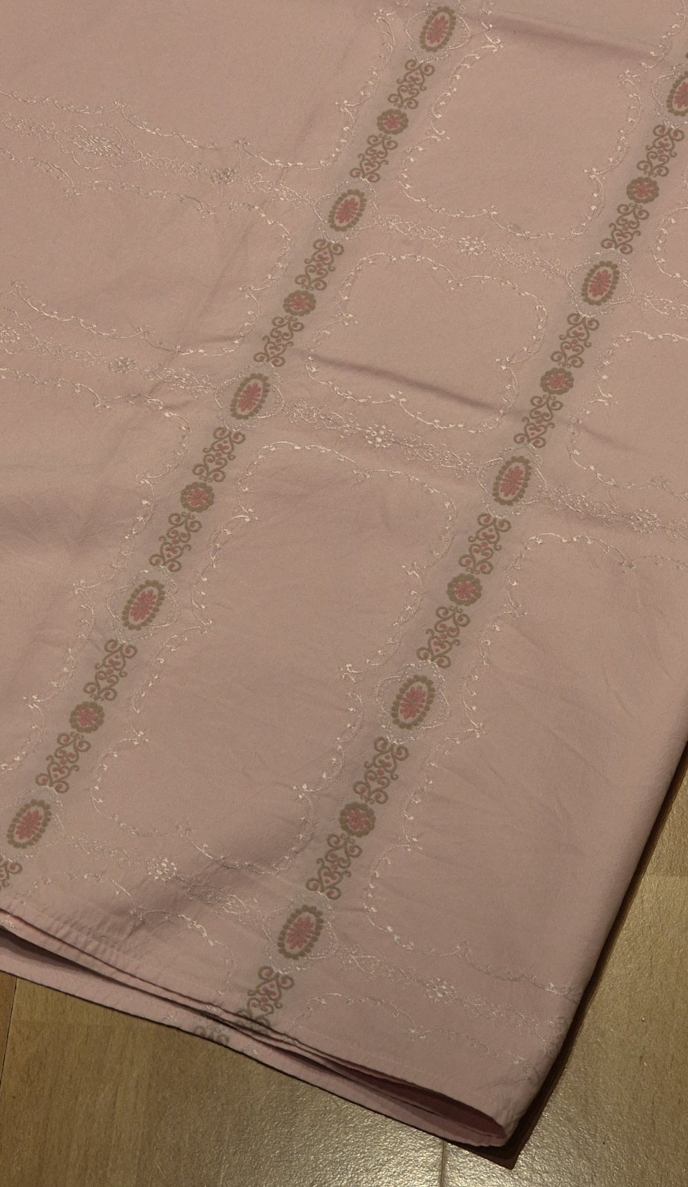Tischdecke alt Stickerei vintage rosa 127 x 227 cm