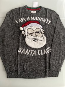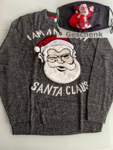 Herren Pulli Pullover Weihnachtspullover Weihnachtsmann Weihnachten Santa Claus Grau Neue Maske Mundschutz Geschenk Ho Ho Ho Gr. M, neu mit Etikett